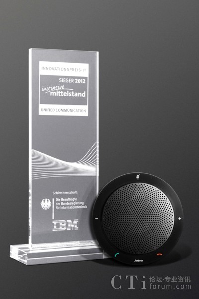 著名的信息技術創(chuàng)新獎每年都會在全球最大的數(shù)字信息技術和電信解決方案博覽會CeBIT上評出。評審團在40個類別的2500多個競品中評定Jabra SPEAK 410為統(tǒng)一通信類的獲獎產(chǎn)品。該獎項由IBM贊助,并由德國聯(lián)邦政府的信息技術代表Cornelia Rogall-Grothe夫人頒給捷波朗。