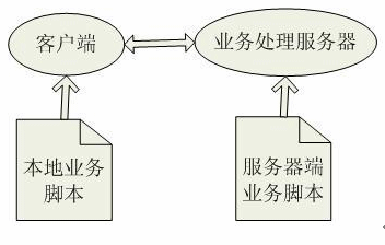 整個業(yè)務(wù)數(shù)據(jù)和業(yè)務(wù)處理都由XML配置管理,系統(tǒng)業(yè)務(wù)被分成本地業(yè)務(wù)邏輯和服務(wù)器端業(yè)務(wù)邏輯,客戶端通過提取本地業(yè)務(wù)邏輯腳本中的數(shù)據(jù)處理業(yè)務(wù)邏輯,業(yè)務(wù)處理服務(wù)器通過提取服務(wù)器端業(yè)務(wù)邏輯腳本中的數(shù)據(jù)訪問數(shù)據(jù)庫,并將數(shù)據(jù)庫返回結(jié)果發(fā)往客戶端。本地業(yè)務(wù)邏輯和服務(wù)器端業(yè)務(wù)邏輯之間的邏輯關(guān)系是通過一套配置腳本維護。如圖: