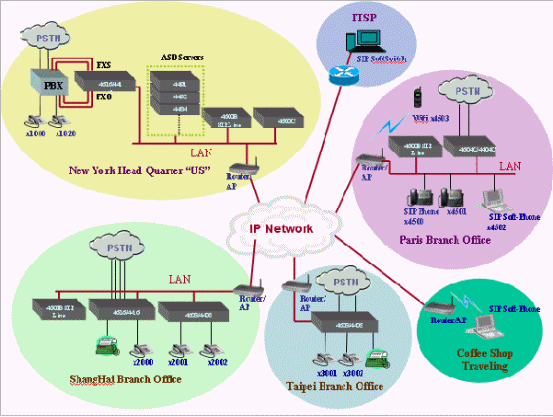 MOSA 4600 IP-PBX特別合適有跨國(guó)或者多個(gè)分公司的企業(yè),每個(gè)分公司可以依其喜好選擇CPE設(shè)備,例如傳統(tǒng)電話機(jī)或者新一代的IP Pone,再透過(guò)網(wǎng)絡(luò)的連結(jié),將不同分公司的交換機(jī)整合成一個(gè)單一的交換機(jī),使用者的撥號(hào)方式和傳統(tǒng)的交換機(jī)一樣相當(dāng)方便。例如分公司之間的同仁互撥電話,不論是在同一個(gè)辦公室或者不同國(guó)家,只需要拿起電話直撥對(duì)方的分機(jī)號(hào)碼即可。