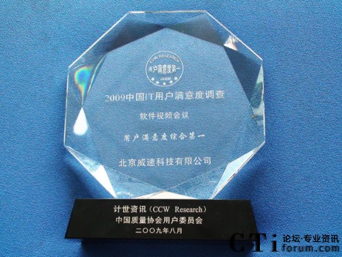 CTI論壇(ctiforum)09月03日消息: 在27日剛剛結(jié)束的“2009中國(guó)IT用戶滿意度年會(huì)”上,威速科技喜獲“2009軟件視頻會(huì)議IT用戶滿意度綜合第一”大獎(jiǎng)。憑借在產(chǎn)品與服務(wù)方面多年的優(yōu)異表現(xiàn),成立10周年的威速科技連續(xù)9年獲此殊榮,這也充分彰顯了威速科技已成為視頻會(huì)議軟件市場(chǎng)上公認(rèn)的滿意品牌。