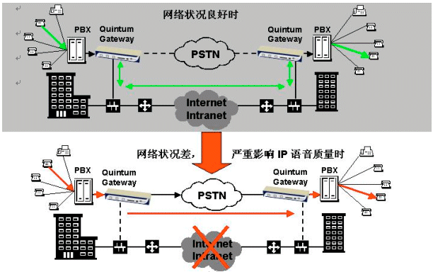 。。Quintum TASQTM專利技術(shù)可動(dòng)態(tài)監(jiān)控網(wǎng)絡(luò)流量狀況,在任何時(shí)刻當(dāng)網(wǎng)絡(luò)頻寬低于企業(yè)預(yù)設(shè)門限值,以致于無(wú)法負(fù)荷企業(yè)所要求的語(yǔ)音品質(zhì)時(shí),語(yǔ)音回路將自動(dòng)切換到傳統(tǒng)