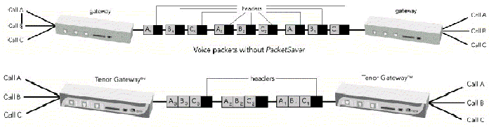 saverTM會(huì)將同一時(shí)間通話中將同一個(gè)目的地的所有語(yǔ)音IP包的包頭部分共享,這樣可以節(jié)省許多頻寬,并加快設(shè)備運(yùn)作的速度。經(jīng)過(guò)實(shí)驗(yàn)證明:只需三方電話就可改善40%的頻寬使用效率。此特色讓Quintum