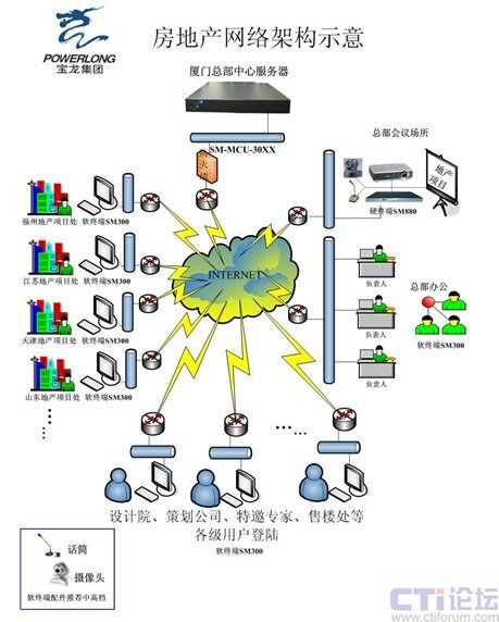 寶龍集團(tuán)在業(yè)內(nèi)進(jìn)行慎重的比較和選擇。首先,該系統(tǒng)不僅能夠支持專線,而且要能兼容寬帶互聯(lián)網(wǎng)。一來(lái)專線接入費(fèi)用比較高;二來(lái)如果脫離專線網(wǎng)絡(luò),就會(huì)普遍存在帶寬不足、瞬時(shí)擁塞、高丟包率等問(wèn)題,視音頻質(zhì)量很難達(dá)到令用戶滿意的水平。其次,企業(yè)要提高自己的競(jìng)爭(zhēng)力,成本是一個(gè)重要的考慮因素。在綜合各種因素,廣泛論證之后,該公司決定選擇一套軟硬結(jié)合、能在互聯(lián)網(wǎng)上實(shí)現(xiàn)高清晰度視頻、高性價(jià)比的視頻會(huì)議系統(tǒng)。