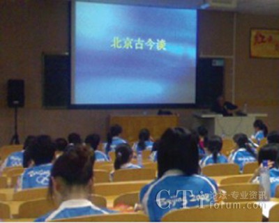 7月25日中央財(cái)經(jīng)大學(xué)的課堂里,近百位奧運(yùn)觀眾呼叫中心的志愿者聆聽(tīng)了北京第二外國(guó)語(yǔ)大學(xué)西班牙語(yǔ)呂龍根教授的講座——“北京古今談”。呂教授幽默的語(yǔ)言、澎湃的激情,感染并征服了在座的每一位志愿者。教授從中國(guó)古代的六大古都(北京、西安、洛陽(yáng)、開(kāi)封、南京、杭州)談到古代北京的五朝建都(遼、金、元、明、清),從北京偉大的中軸線,談到北京建筑的風(fēng)水學(xué),從北京的胡同和四合院,談到北京的著名小吃,等等等等。可謂是古今暢想、無(wú)所不談,真正讓我們領(lǐng)略了何為學(xué)者風(fēng)范。