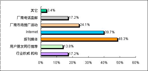 此次調(diào)查顯示,由于視頻會(huì)議系統(tǒng)的行業(yè)性相對(duì)較強(qiáng),目前用戶在了解視頻終端會(huì)議系統(tǒng)產(chǎn)品時(shí),報(bào)刊媒體、Internet、廠商推廣活動(dòng)、廠商電話直郵和行業(yè)權(quán)威機(jī)構(gòu)成為主要的信息來(lái)源渠道。值得注意的是網(wǎng)絡(luò)的普及使得更多的用戶也選擇Internet作為了解信息的重要途徑。但對(duì)各視頻會(huì)議系統(tǒng)的廠商而言,由于客戶群體相對(duì)龐大,分散區(qū)域較為廣泛,在作好直銷的同時(shí),也應(yīng)該加強(qiáng)渠道的建設(shè),以更及時(shí)和準(zhǔn)確地了解到用戶采購(gòu)和招標(biāo)的信息,同時(shí)也能夠降低銷售成本。