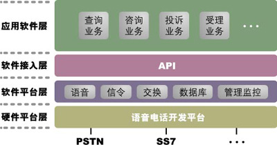 2.系統(tǒng)建設(shè)周期較短,功能擴(kuò)展性強(qiáng)——語(yǔ)音卡方案的主要功能都由軟件編程實(shí)現(xiàn)。國(guó)內(nèi)一些語(yǔ)音卡方面的軟件開(kāi)發(fā)商已經(jīng)積累了語(yǔ)音接續(xù)、排隊(duì)分發(fā)、撥內(nèi)外線、電話會(huì)議、文本傳真轉(zhuǎn)換、文本語(yǔ)音轉(zhuǎn)換等功能模塊,通過(guò)簡(jiǎn)單組合10種符合國(guó)際規(guī)范的模塊,就可以開(kāi)發(fā)出滿足用戶需求的各種應(yīng)用系統(tǒng)。基于同樣原因,系統(tǒng)開(kāi)發(fā)新功能也較為容易。