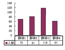 四類(lèi)群體的數(shù)量總體分布如圖所示: