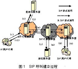 圖1是一個SIP呼叫建立過程的示意圖,其中: