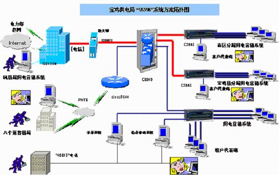 、 利用現(xiàn)有的計算機(jī)網(wǎng)絡(luò)基礎(chǔ)實現(xiàn)市區(qū)供電分局、寶雞縣供電分局、鳳縣供電分局三個供電分局與局客戶服務(wù)中心的信息聯(lián)結(jié);