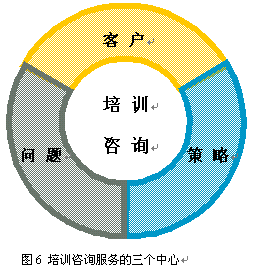 當(dāng)然,提升效果對于培訓(xùn)咨詢服務(wù)提供商來說是一個(gè)很高的要求,不但要有專業(yè)運(yùn)營經(jīng)驗(yàn)和精深的行業(yè)知識(shí),還需要從"以問題為中心"的思路過渡到關(guān)注"問題、客戶、策略"三個(gè)中心(如圖6 所示)。
