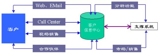 CRM系統(tǒng)的實施與企業(yè)的內(nèi)部和外部系統(tǒng)緊密相關。其涉及市場、營銷、銷售、實施、客戶服務與支持等一系列循環(huán)過程。一個完整的CRM系統(tǒng)不僅包含與客戶的多方位的多渠道接觸外,還包含市場的定位和分割,營銷策略的制定和客戶細分,銷售機會的把握,銷售的執(zhí)行(任務分派,任務的跟蹤),客戶的管理與分析,客戶的反饋與策略的評判等。從而再重新修正市場策略。這樣一個循環(huán)過程涉及管理、市場、客戶、產(chǎn)品、數(shù)據(jù)分析與處理等多學科的知識與技術。