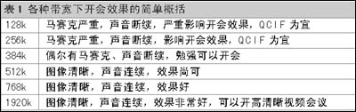 網(wǎng)絡(luò)環(huán)境差,可以選擇低帶寬產(chǎn)品,側(cè)重H.261、H.263、MPEG4的產(chǎn)品,尤其是H.263,在低帶寬下比其他算法效果好。如果用戶網(wǎng)絡(luò)帶寬非常窄,對視頻會議設(shè)備的投入預(yù)算也比較小,可以考慮桌面系統(tǒng)、軟件視頻等解決方案,采用QCIF格式開會,不失為一種經(jīng)濟(jì)實(shí)用的辦法。