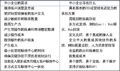當中小企業(yè)從“非正式”轉(zhuǎn)向“正式”客戶中心操作時,他們需要與大型企業(yè)相同的客戶中心能力。對于這些企業(yè),合適的解決方案必須要解決一個重要的業(yè)務(wù)問題,例如以易于客戶聯(lián)絡(luò)的各種方式交流,使其成為真正的客戶中心。也許更重要的是,實現(xiàn)成本必須處于控制之下且管理良好。中小企業(yè)期望的是功能完善的客戶聯(lián)絡(luò)中心,但是價格必須能夠承擔得起,低花費,低培訓(xùn)成本,短期內(nèi)即可實現(xiàn)。