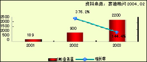 圖1 2001~2003年SMS業(yè)務(wù)發(fā)展情況
