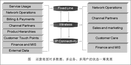 “很淺顯地說,就目前國內(nèi)運(yùn)營商的分析水平而言,問題并不是出在工具上,對于一些省級運(yùn)營商而言,無論是集成商、還是系統(tǒng),都可以說已經(jīng)采用了全球領(lǐng)先供應(yīng)商的產(chǎn)品,但具體到業(yè)務(wù)上,由于長期以來的模式尚未改變,有可能到客戶調(diào)查時才發(fā)現(xiàn),電話占用號碼的客戶已經(jīng)停機(jī)了,而調(diào)查人員卻不能實(shí)時看到業(yè)務(wù)收入表,更準(zhǔn)確地說,針對同一客戶,他用了哪些業(yè)務(wù)?是單一業(yè)務(wù)還是多種業(yè)務(wù)?是優(yōu)惠業(yè)務(wù)還是正常業(yè)務(wù)?服務(wù)坐席都有可能無法立即獲得實(shí)時數(shù)據(jù),這樣的前提下,再怎么說計費(fèi)系統(tǒng)、融合業(yè)務(wù)、服務(wù)質(zhì)量,都不具現(xiàn)實(shí)意義。”山東網(wǎng)通計費(fèi)部門一位不愿意透露姓名的副主任級主管告訴記者。