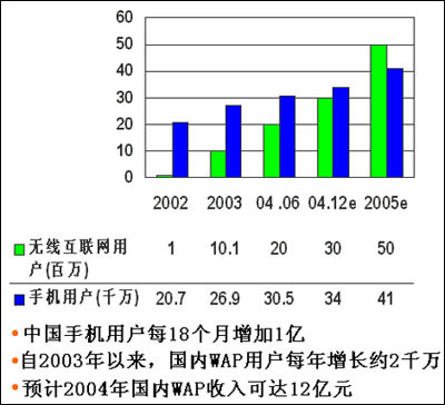 有數(shù)據(jù)顯示,國(guó)內(nèi)WAP用戶自2003年來以每年2000萬的速度遞增,預(yù)計(jì)2005年末將有望達(dá)到5000萬,接近國(guó)內(nèi)Internet用戶總數(shù)的一半。WAP雖然是一個(gè)充滿了機(jī)會(huì)的市場(chǎng),但國(guó)內(nèi)現(xiàn)有的WAP站點(diǎn)資源很難滿足WAP用戶的需求也是事實(shí)。劉斌認(rèn)為,2005年將是對(duì)WAP非常關(guān)鍵的一年,在這一年里,WAP搜索將有望成為WAP平臺(tái)上的“殺手級(jí)應(yīng)用”,并最終催熟國(guó)內(nèi)各種相關(guān)的WAP應(yīng)用。當(dāng)然,這有一個(gè)前提,那就是中文WAP網(wǎng)絡(luò)資源必須在今年得到極大豐富。