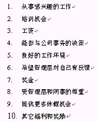 在對員工關(guān)心的十個指標的調(diào)研、統(tǒng)計分析后發(fā)現(xiàn),在企業(yè)提供良好的培訓(xùn)體系前提下,人員的流失與企業(yè)提供的薪酬有必然的關(guān)系。各因素影響程度由高到低排序如下: