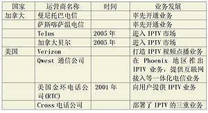 表2 加拿大和美國(guó)IPTV運(yùn)營(yíng)商的運(yùn)營(yíng)情況
