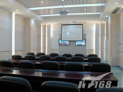 在副會場方面,和主會場區(qū)別不大,不過比主會場要光亮一點,面積也小了很多,所以主顯示系統(tǒng)只需要SONY PX40正面投影(120寸)就可以搞定。VPL-PX40可以多種方式安裝,包括桌面正投,吊頂及背投。供選購的兩款鏡頭擴(kuò)展了安裝的靈活性。中央控制開關(guān)功能讓用戶能通過中央電源開關(guān)直接開關(guān)投影機(jī)。VPL-PX40還配備了獨特的密碼認(rèn)證系統(tǒng),采用SONY液晶板的新型光學(xué)系統(tǒng),結(jié)合265W