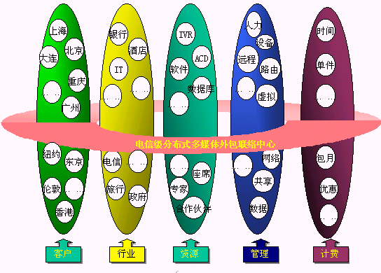 電信運營商提供的用戶、客戶、電信公司的統(tǒng)一的聯(lián)系平臺,各類客戶通過使用聯(lián)系平臺,向其用戶提供方便的、不受時間、地域和媒體的限制的"3A"級聯(lián)絡服務,用戶、客戶、電信平臺間的聯(lián)絡能得到有效路由、管理、品質保障;聯(lián)絡中心通過將分布在各地、各種媒體、各種形式的資源整合在一起實現(xiàn)客戶服務增值,創(chuàng)造無限商機,有效提升客戶聯(lián)絡中心的價值,使用戶得到最貼身的、個性化的、專業(yè)的服務,為客戶提供成本更低、資源更豐富、服務更專業(yè)、具備強大商業(yè)智能的產品營銷及服務、電信運營商則開發(fā)大量的增值服務、產生更多的利潤增長空間、更多忠實的客戶,實現(xiàn)三方面共同成功。