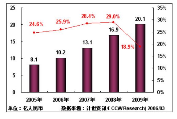 計世資訊(CCW Research)預(yù)計:2006年中國城市應(yīng)急聯(lián)動系統(tǒng)IT投資將保持25.9%的增長率,投資規(guī)模將達(dá)到10.2億元;由于"十一五"規(guī)劃的實施,以及數(shù)字奧運(yùn)進(jìn)入關(guān)鍵建設(shè)階段,預(yù)計在2007年,中國城市應(yīng)急聯(lián)動系統(tǒng)增長率達(dá)到28.4%,2008年增長率達(dá)到29.0%;到2009年中國城市應(yīng)急聯(lián)動系統(tǒng)將進(jìn)入穩(wěn)定增長階段,IT投入將達(dá)到20.1億元。