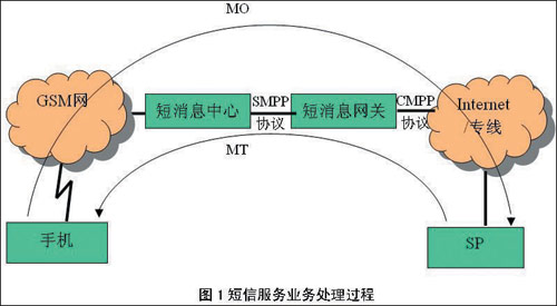 用戶收短信業(yè)務(即MT業(yè)務,如短信群發(fā)等):提供此項業(yè)務的SP將短信內(nèi)容以CMPP協(xié)議發(fā)給連接的短信網(wǎng)關(guān),由短信網(wǎng)關(guān)根據(jù)用戶手機號段以SMPP協(xié)議發(fā)給用戶所屬的短信中心;
