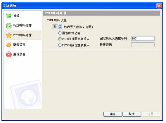 現(xiàn)在你的安裝工作已經完成了,如果有 Skype客戶撥打ITA-Demo就會聽到“歡迎致電某某公司,產品咨詢請撥15,產品訂購請撥16,人工服務請撥0”的語音提示(在交換機上設定的語音)。