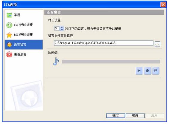 現(xiàn)在你的安裝工作已經完成了,如果有 Skype客戶撥打cn13020063118就會聽到“歡迎致電某某公司,產品咨詢請撥15,產品訂購請撥16,人工服務請撥0”的語音提示(在ITA軟件設定的語音)。