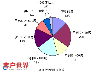 那么和剛才雜志社調(diào)查的結(jié)果是一樣的。這個(gè)數(shù)字又是政府方面調(diào)查的結(jié)果,他們調(diào)查的很細(xì),對(duì)很小規(guī)模的,比如說1-4人的呼叫中心都進(jìn)行了調(diào)查,并且看到這種小規(guī)模的呼叫中心還占有很大的比例。可以看到,10人以下的呼叫中心可能在這個(gè)結(jié)果里面占了基本上高于50%,所以可能得到一個(gè)結(jié)論,就是在日本小型的呼叫中心非常多。