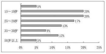 KDDI有關(guān)人士表示:“這個(gè)業(yè)務(wù)當(dāng)初是瞄準(zhǔn)30多歲用戶開(kāi)發(fā)的,但實(shí)際上在購(gòu)買(mǎi)此類手機(jī)的人士中,10多歲或20多歲的年輕用戶占了62%,見(jiàn)圖1。據(jù)本公司以高中生和大學(xué)生為對(duì)象實(shí)施的調(diào)查結(jié)果顯示,如果音質(zhì)與CD差不多就愿意使用手機(jī)音樂(lè)發(fā)行服務(wù)!眂hakuutaFull業(yè)務(wù)的特點(diǎn):