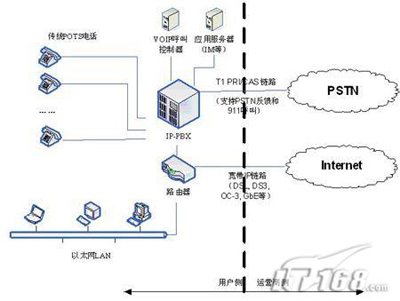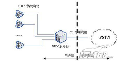 相反,在傳統(tǒng)的PBX或新興的IP-PBX中,這些功能模塊通常配置在用戶側(cè)的網(wǎng)絡(luò)元素上,而且通過一條或多條專用線路T1(傳統(tǒng)PBX)或DSL(新興PBX)連接到中心辦公室,用PSTN的連接。圖1說明了PBX和Centrex服務(wù)的區(qū)別。而且,DSL還能在相同的鏈路支持語(yǔ)音和數(shù)據(jù)的傳輸,而且維護(hù)鏈路的成本也遠(yuǎn)遠(yuǎn)小于維護(hù)T1所需的代價(jià)。另外,由于呼叫控制能夠在本地裝載,而IP-PBX能夠支持Internet連接,因此每23(T1-PRI)或24(T1-CAS)個(gè)電話終端就不再需要一條專用線路T1的支持了。(后續(xù)將進(jìn)一步說明)