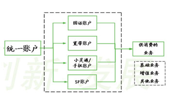 由于目前我國(guó)的信用體系尚不完善,所以,電信企業(yè)自身需要首先完善企業(yè)級(jí)的客戶(hù)信用體系,而設(shè)立統(tǒng)一實(shí)名制賬戶(hù)是完善客戶(hù)信用體系的有效途徑。首先,建立實(shí)名制賬戶(hù)便于固網(wǎng)運(yùn)營(yíng)商構(gòu)建相對(duì)完整、準(zhǔn)確的客戶(hù)信息資料庫(kù)。其次,通過(guò)建立統(tǒng)一賬戶(hù),可以將目前彼此孤立的固定電話(huà)、小靈通、寬帶、未來(lái)的手機(jī)業(yè)務(wù)及增值業(yè)務(wù)等各子消費(fèi)賬戶(hù)相關(guān)聯(lián),從而方便運(yùn)營(yíng)商建立客戶(hù)業(yè)務(wù)記錄,以及對(duì)多消費(fèi)賬戶(hù)進(jìn)行統(tǒng)一的信用管理。第三,運(yùn)營(yíng)商可以針對(duì)統(tǒng)一賬戶(hù)的消費(fèi)總額提供積分獎(jiǎng)勵(lì),增加用戶(hù)黏度。統(tǒng)一賬戶(hù)與各消費(fèi)賬戶(hù)的關(guān)聯(lián)關(guān)系如圖4所示。