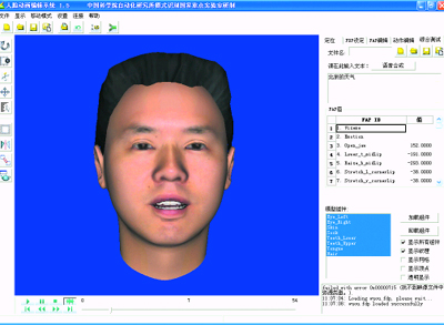 說話人頭像模塊包括語音合成、人臉動畫兩個子模塊。語音合成模塊是為了將天氣查詢獲得信息表達出來。本文中,語音合成模塊是基于中科院自動化所設計的“繪聲”語音合成系統(tǒng),該系統(tǒng)能夠?qū)⑷我廨斎氲奈谋,以連續(xù)自然的聲音朗讀出來,并能夠處理中文普通話、粵語、英語等多種語言或方言。