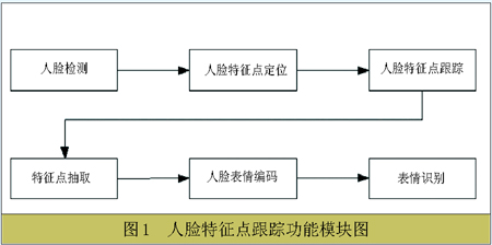 該模塊首先進行人臉檢測,對眼角、嘴角等特征點進行粗略定位,然后根據(jù)小波變換進行精細定位,最終得到較為精細的人臉表情參數(shù)初始值。之后運用Lucas-Kanade算法進行特征點的跟蹤,利用跟蹤得到的特征點位置首先根據(jù)Ekman的人臉表情編碼規(guī)則進行編碼,然后根據(jù)所得到的編碼結(jié)果進行表情識別。該系統(tǒng)不僅實現(xiàn)了全自動的特征點定位和跟蹤,而且根據(jù)人臉特征點的分布模型,可以對跟蹤時特征點的丟失現(xiàn)象進行補償。