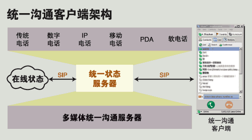 從MSN、QQ提供的語音聊天到曾經(jīng)風靡一時的Skype,再到今天思科、北電、微軟、Avaya等推出的統(tǒng)一溝通桌面客戶端系統(tǒng),通信的“最后一公里”發(fā)生了根本的轉(zhuǎn)變。原來為了節(jié)省長途話費而設(shè)計的VoIP,今天和ERP、CRM一樣成為了以提高企業(yè)運營效率為目的的核心生產(chǎn)力系統(tǒng)。統(tǒng)一溝通最令人憧憬的未來是給最終用戶提供一個友好的通信界面:“所有的信息源匯總到一起,而用什么方式來取得這個信息,只要在手邊最方便的工具上輕輕點擊就OK了!