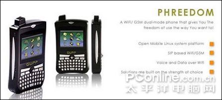 很多技術(shù)分析人士都認為,VoWiFi的下一波功能將主要集中在雙模手機上,即手機擁有Wi-Fi IP電話功能和普通蜂窩電話功能。當用戶位于家中、辦公室或公共Wi-Fi熱點區(qū)域,可以使用Wi-Fi IP電話功能進行通話,而在沒有Wi-Fi網(wǎng)絡(luò)的地區(qū),則可以使用傳統(tǒng)的蜂窩網(wǎng)絡(luò)進行通話。不論采用哪種網(wǎng)絡(luò),用戶的手機號碼是唯一的。由于通過Wi-Fi網(wǎng)絡(luò)撥打IP電話的費用要低于現(xiàn)有的固定電話,因此未來這種電話很可能會取代大部分用戶目前使用的固定電話。下圖為GUPP公司最新推出的VoWiFi/GSM雙模Linux智能手機PHREEDOM