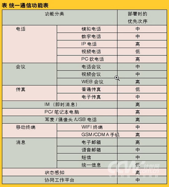 ”、“智能通信”和“統(tǒng)一溝通”等,盡管每個(gè)廠商所給出的定義均有些細(xì)微的差別,但總體來看,其核心內(nèi)容就是指將現(xiàn)在各種溝通方式進(jìn)行融合,目的是讓人們無論是在任何時(shí)間、任何地點(diǎn),都可以通過任何設(shè)備、任何網(wǎng)絡(luò)實(shí)現(xiàn)自由的溝通。目前常用的溝通方式有電話、傳真、短信、email、Web會(huì)議、視頻會(huì)議、語音信箱、IM軟件、協(xié)同工作平臺(tái)等等,這些溝通方式覆蓋了電信、IT和互聯(lián)網(wǎng)三大領(lǐng)域,因此統(tǒng)一通信是這三大領(lǐng)域逐步發(fā)展、自然融合的結(jié)果。
