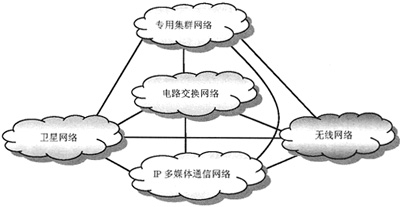 作為一個國家的公眾通信網(wǎng)絡,它是由多種不同性質(zhì)的互聯(lián)互通的電信網(wǎng)絡組成,它們基于不同的技術(例如電路交換、無線、IP和ATM)和架構,支持不同的協(xié)議和業(yè)務。不同的網(wǎng)絡類型包括電路交換網(wǎng)絡、衛(wèi)星網(wǎng)絡、無線網(wǎng)絡、專用集群網(wǎng)絡、IP多媒體通信網(wǎng)絡(見圖1)。目前,國內(nèi)一些大城市自建的數(shù)字集群政務專網(wǎng)可以作為應急通信的指揮平臺,它和公網(wǎng)應該是互相補充的關系。廣播網(wǎng)絡也是公眾通信網(wǎng)的補充,主要用于警示、公告信息的發(fā)布。