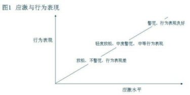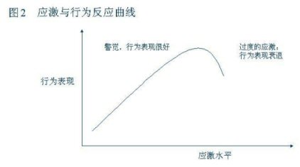當(dāng)應(yīng)激水平處于一個(gè)較低的指標(biāo)時(shí)人在心理上處于一個(gè)放松、不警覺的狀態(tài),從而關(guān)聯(lián)的行為表現(xiàn)就比較差但隨著應(yīng)激水平的加大,相關(guān)聯(lián)的形為表現(xiàn)就會(huì)從中等向表現(xiàn)良好過渡。