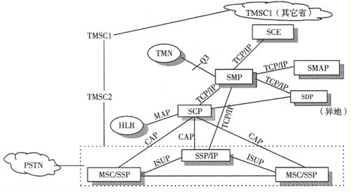 這是用戶進(jìn)入移動(dòng)智能網(wǎng)的接入點(diǎn),與某交換局綜合在一起,IP設(shè)置于SSP中。它是一個(gè)交換機(jī),用來(lái)識(shí)別用戶的呼叫,把用戶的請(qǐng)求傳送給業(yè)務(wù)控制點(diǎn)。SSP可最初設(shè)在高等級(jí)交換局(長(zhǎng)途局),逐步在匯接局和端局綜合設(shè)置。SSP的No.7信令軟件應(yīng)具備MTP、TUP或ISUP、SCCP、TCAP和INAP。