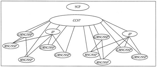 移動(dòng)智能網(wǎng)的組網(wǎng)有多種方案,目前傾向的組網(wǎng)方案是通過(guò)OVERLAY方式,在不改變現(xiàn)有移動(dòng)通信網(wǎng)的條件下,通過(guò)增加有限的SSP,利用特殊號(hào)碼段觸發(fā)智能業(yè)務(wù)的方式來(lái)實(shí)現(xiàn)全網(wǎng)開(kāi)通智能業(yè)務(wù)的目的。而目標(biāo)網(wǎng)方式則要求把所有MSC端局都升級(jí)成為具有SSF功能的MSC,通過(guò)用戶登記的業(yè)務(wù)簽單信息來(lái)觸發(fā)智能業(yè)務(wù)。其目標(biāo)網(wǎng)的組網(wǎng)圖如圖3所示。