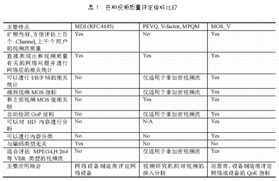 MOS_V,另一種是視頻的全參考(Full Reference)質(zhì)量評定。幾種評定方面的簡單比較如表1所示,相應(yīng)指標(biāo)的介紹可以參考《電信網(wǎng)技術(shù)》2007年第12期的《IPTV