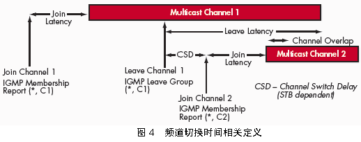 。5)平均頻道離開延時:從發(fā)出IGMP leave消息直到接收到該頻道的最后一個組播包之間的時間。通常頻道離開延時越短越好。