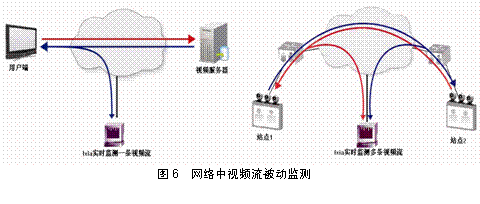 流提取模塊以串聯(lián)的方式與以太網(wǎng)鏈路相連,而IP數(shù)據(jù)包則通過該以太網(wǎng)鏈路提取。兩個雙介質(zhì)(銅纜和光纖)兼容以太網(wǎng)測試端口用于互相連接。串聯(lián)的測試端口承載網(wǎng)絡(luò)數(shù)據(jù)傳輸,而不改變以太網(wǎng)鏈路的網(wǎng)絡(luò)特性。提取的數(shù)據(jù)包流都將經(jīng)過鏡像處理,然后被轉(zhuǎn)發(fā)到第3個千兆以太網(wǎng)標(biāo)準(zhǔn)兼容的監(jiān)視器端口,該端口可連接到外部設(shè)備以便進(jìn)行數(shù)據(jù)包流分析。這種測試方式,真正實現(xiàn)了視頻質(zhì)量主觀和客觀評定的有效結(jié)合,在得到視頻流各個用戶體驗質(zhì)量客觀指標(biāo)的同時,還可以實時主觀地觀看視頻節(jié)目質(zhì)量。這是目前最為全面、最為有效的視頻質(zhì)量評定方式(見圖7)。