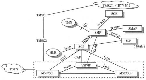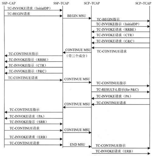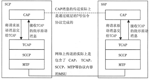 移動智能網應用部分(CAP)是遠程操作服務單元(ROSE),ROSE規(guī)程包括在TCAP成份子層中,并作為單位數據(UDT)放在SCCP中傳送。我國CAP是建立在以TCAP和SCCP為基礎的No.7信令網傳送的,CAP受限于SSP-SCP、SCP-IP之間的接口規(guī)范。