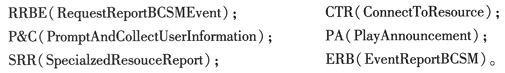 從分布功能平面觀察,每個業(yè)務分支對應了一段CAP消息流。預付費用戶查詢業(yè)務流程是移動智能網中比較典型的一個業(yè)務,300業(yè)務的主要流程是:用戶撥接入碼,撥語言位,選擇流程,報余額,通話結束掛機等。CAP的消息流引起自動機的狀態(tài)轉移從而觸發(fā)下列消息事件,為簡單起見,我們在圖例中使用消息的縮寫,具體消息縮寫如下:
