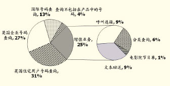 英國(guó)各類號(hào)碼查詢業(yè)務(wù)量的比重(呼叫次數(shù))