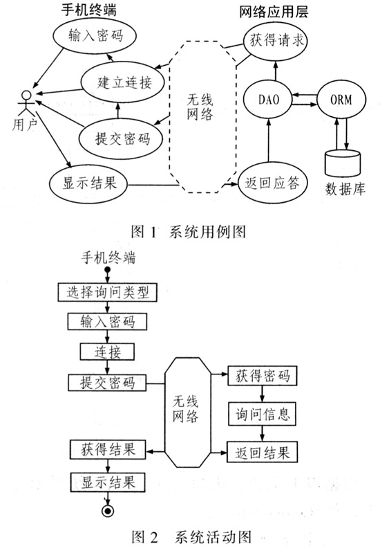 根據(jù)以上需求分析,采用UML對(duì)系統(tǒng)建模(Model)。圖l為系統(tǒng)用例圖,圖2為系統(tǒng)活動(dòng)圖,圖3為系統(tǒng)時(shí)序圖,圖4為系統(tǒng)類(lèi)圖。