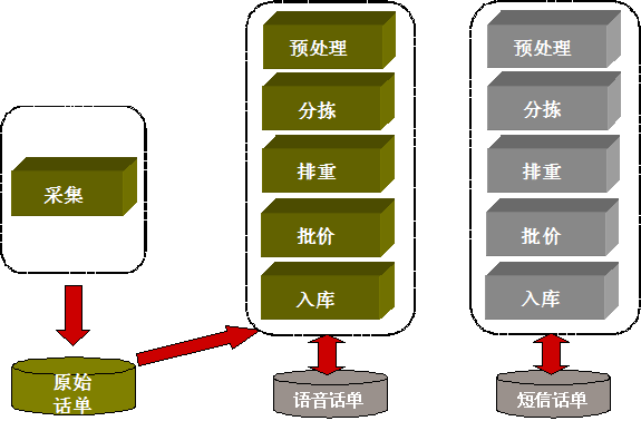 每臺計費(fèi)應(yīng)用服務(wù)器分別運(yùn)行不同的計費(fèi)模塊,如預(yù)處理,排重,分揀,批價,入庫,但都是處理同樣的目標(biāo)話單。