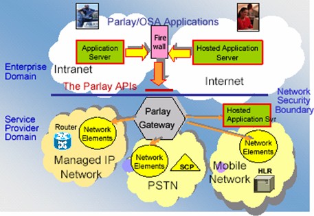 從圖中可以看到,OSA的基本思路是,把電信網(wǎng)絡的服務抽象成為一個特定的接口。這個接口的名稱現(xiàn)在被我們稱為Parlay。建立在OSA基礎之上的服務可以利用Parlay這個接口很容易的使用電信網(wǎng)絡中的服務而不用去關(guān)心這些接口是如何實現(xiàn)的。例如我們的一個多媒體服務希望給一個用戶發(fā)送一條短信以通知他某個事件的發(fā)生,那么這個服務需要做的是告訴Parlay這個接口需要給哪個用戶發(fā)送什么樣的內(nèi)容的信息,而不需要了解在移動網(wǎng)絡中原來是使用SMPP這樣的協(xié)議來實現(xiàn)短信的傳送的,又或者也不用去考慮在一個IP網(wǎng)絡中我們可以用SMTP這樣的協(xié)議來實現(xiàn)他。